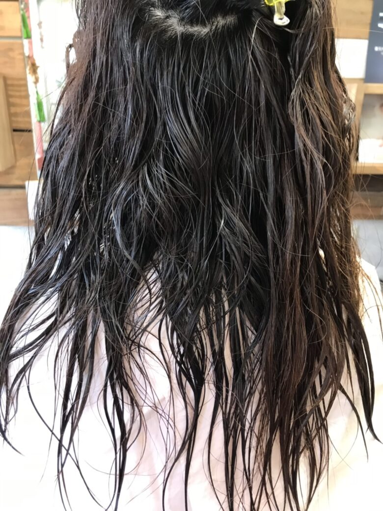 そして、薬剤のメニューをする前に一度濡らして、先にカットをします!