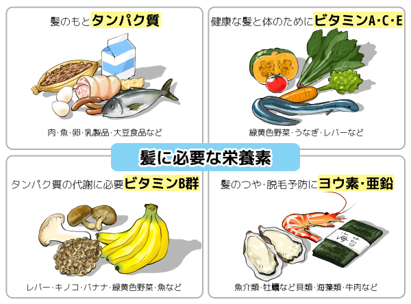 日頃からたんぱく質を摂取し、栄養の不足がないようにしていくのが髪に艶を出す原則です。