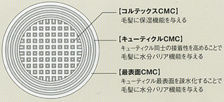 毛髪は、キューティクル、CMC、コルテックスの順番でダメージが進行していきます。