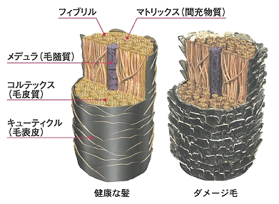 また日常的な生活の中でも徐々に壊れて、失われるとバサバサしたツヤのない髪になってしまいます。