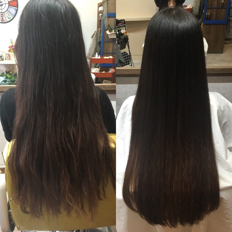 しかし、基本的には一度で半永久的な持続になるので、繰り返し根元から毛先まで縮毛矯正をすることはお勧めしません!