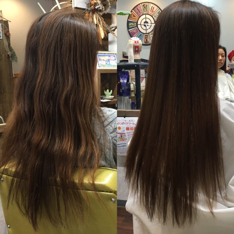 - 縮毛矯正よりも髪のダメージが出ない(技術者による)