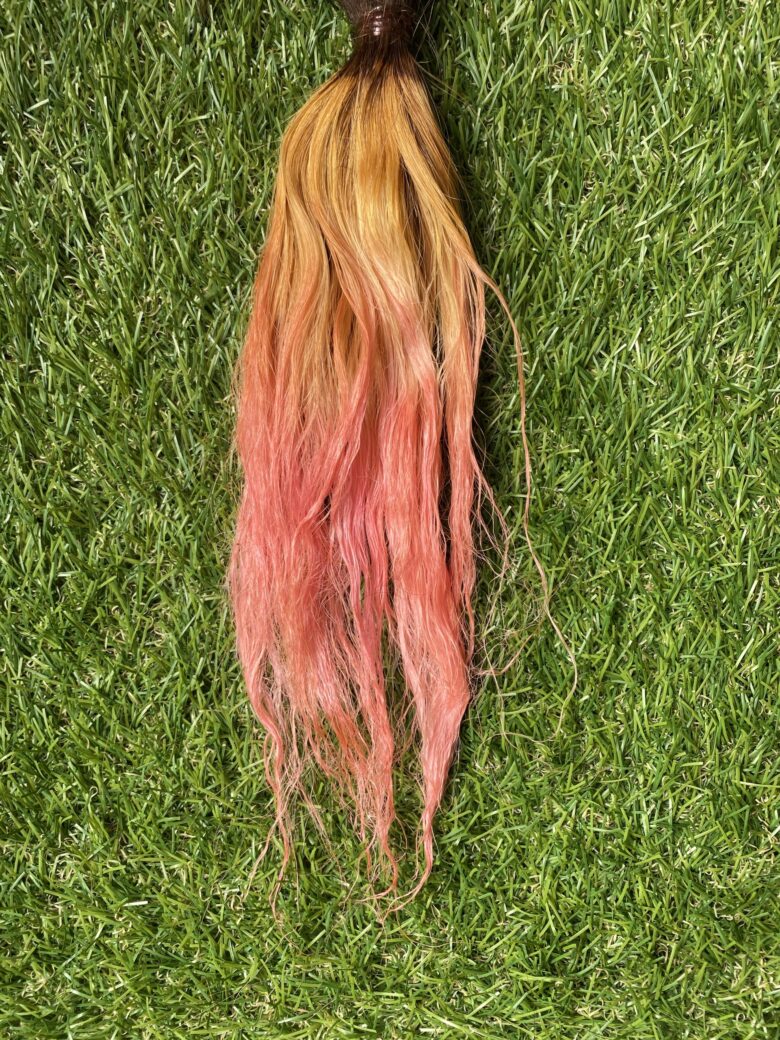 ちなみに、この毛束は縮毛矯正歴がありブリーチ2回という事になります!!!